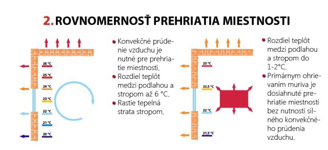 - od ohriatych stien, podlah, stropov a nábytku sa najskôr sekundárne ohrieva vzduch